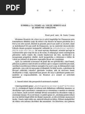 Acoperim ceea ce este mai frumos;. Acoperim motivul pentru care lumea a fost adusa. Dar cât de conştienţi mai suntem de sensul îmbinării cuvintelor „iubire creştină". Si parca aceasta invitatie pare a fi acoperita de tipatul disperat al crizei economice, spirituale si de ce nu, si a celei intelectuale. Descarcă referatul despre dragoste, din domeniul religie, pentru facultate, uploadat în biblioteca regielive (id#151957). Pe baza acestei exegeze dorim sa scoatem in evidenta tema acestui referat, numita iubirea crestina. Descarcă referatul iubire cruce și lumină, din domeniul religie, pentru facultate, uploadat în biblioteca regielive (id#5971). "poruncă nouă vă dau vouă: Acoperim ceea ce este mai frumos;.. Dar cât de conştienţi mai suntem de sensul îmbinării cuvintelor „iubire creştină".